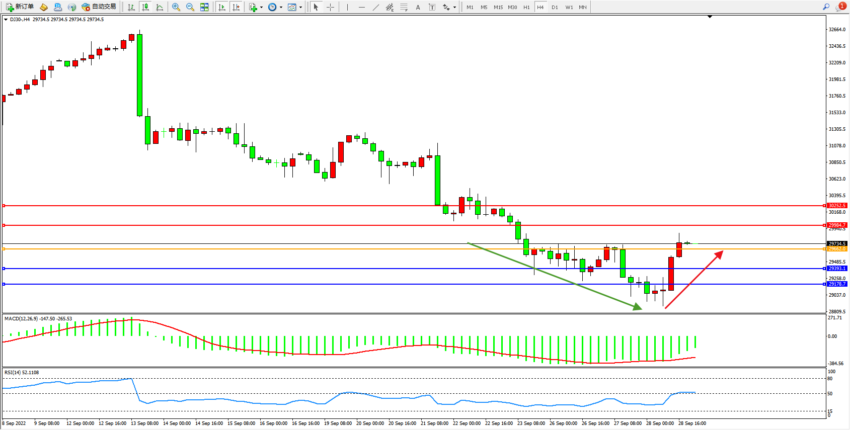 道琼斯指数9月28日(周三)收盘上涨546.77点,涨幅1.88%,报29681.76点;美国股市对经济前景发出了一个非常明确的信号——经济衰退即将到来。摩根大通模型:股市暴跌意味着经济衰退已成定局。