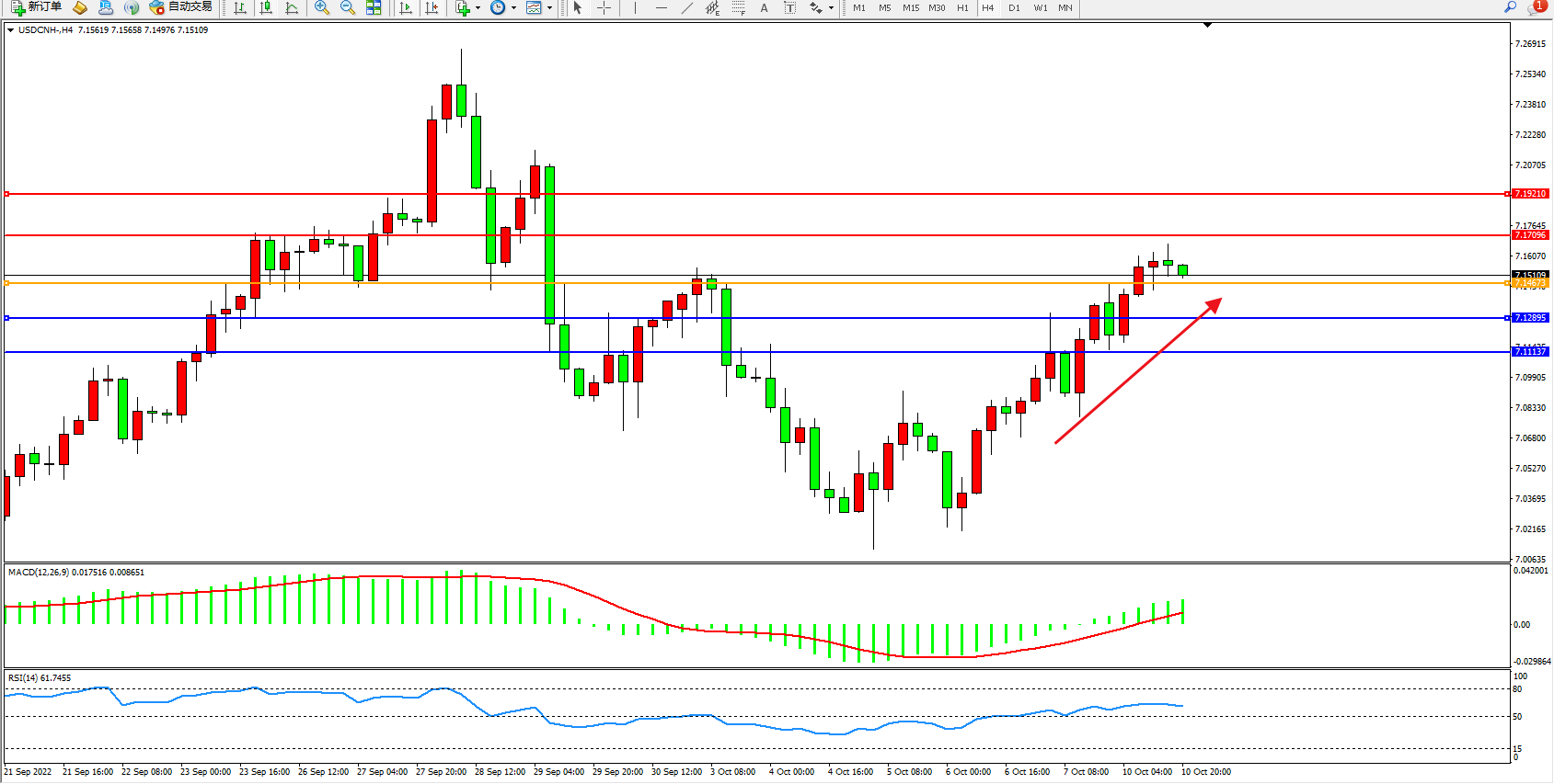 备选策略:7.14673下方看跌,目标7.12895、7.1113