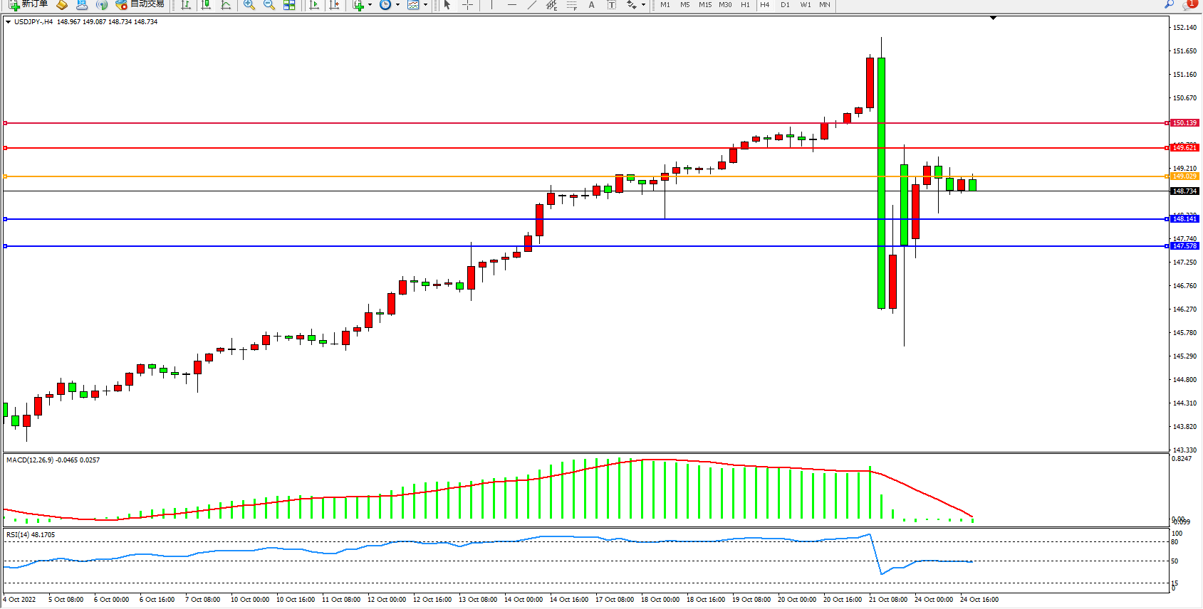 美元兑日圆维持148.734附近震荡,日本当局连续第二天疑似展开干预,日圆在周一早盘出现大幅震荡,但美元在收益率和避险需求的推动下走强,削弱了为缓和日圆跌势所作出的努力。