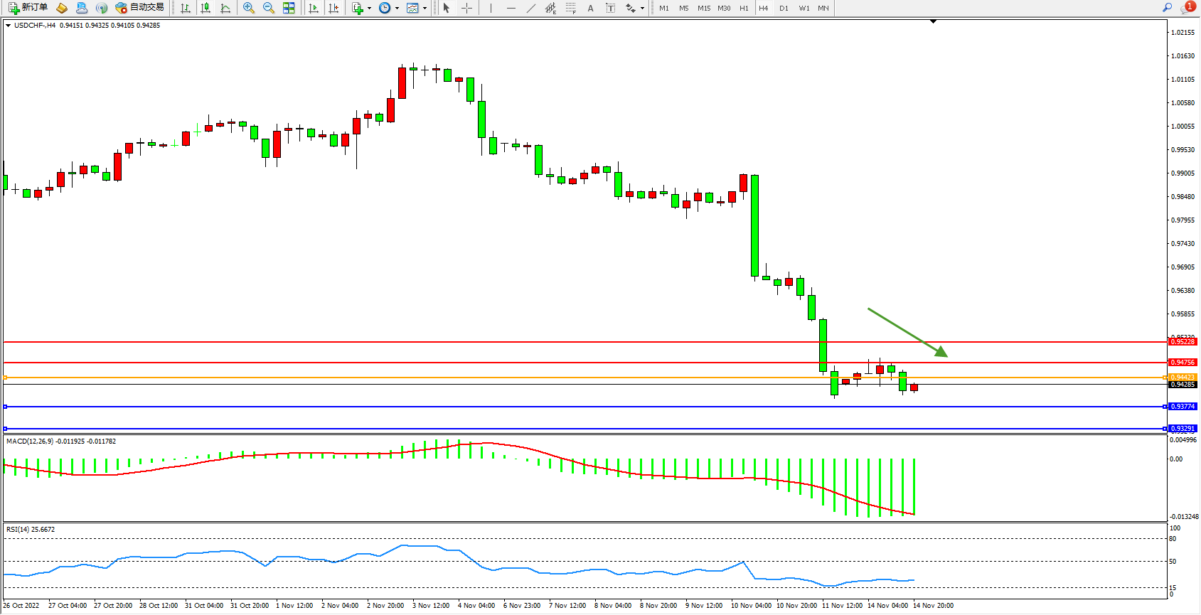 美元兑瑞郎维持0.94285附近震荡,美通胀正在放缓,因此美联储看到了预期的效果。也许放慢一点速度是有道理的,但美联储宁可犯过度加息的错误,也不愿过早暂停加息。