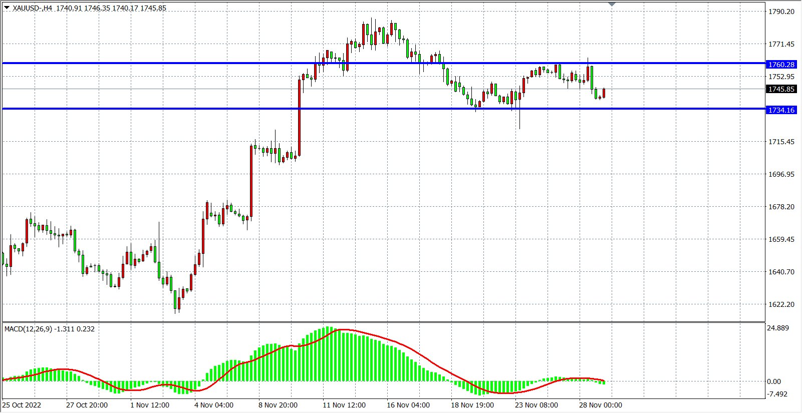 周一(11月28日)美联储多位高官强化鹰派立场,欧美股市齐跌、美元转涨、非美货币承压大跌、10年期美债收益率重回3.7%,现货黄金从1763上方跌落,盘中失守1740美元,最终收跌0.67%。本周有鲍威尔讲话,以及GDP、PEC、非农就业报告的公布,金价波动料将继续放大。