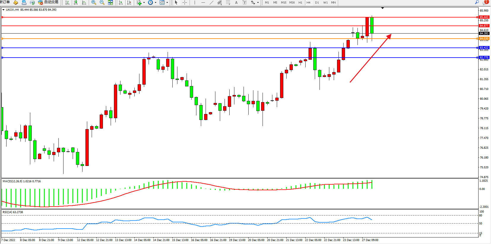 布油维持84.393附近震荡,石油市场的情况可能会大幅收紧。从年中开始,需求将再次超过供应,已经很低的库存将进一步下降,2023年上半年油价将再次强劲上。到2023年年中,一桶布伦特原油的价格应该会再次达到95美元。