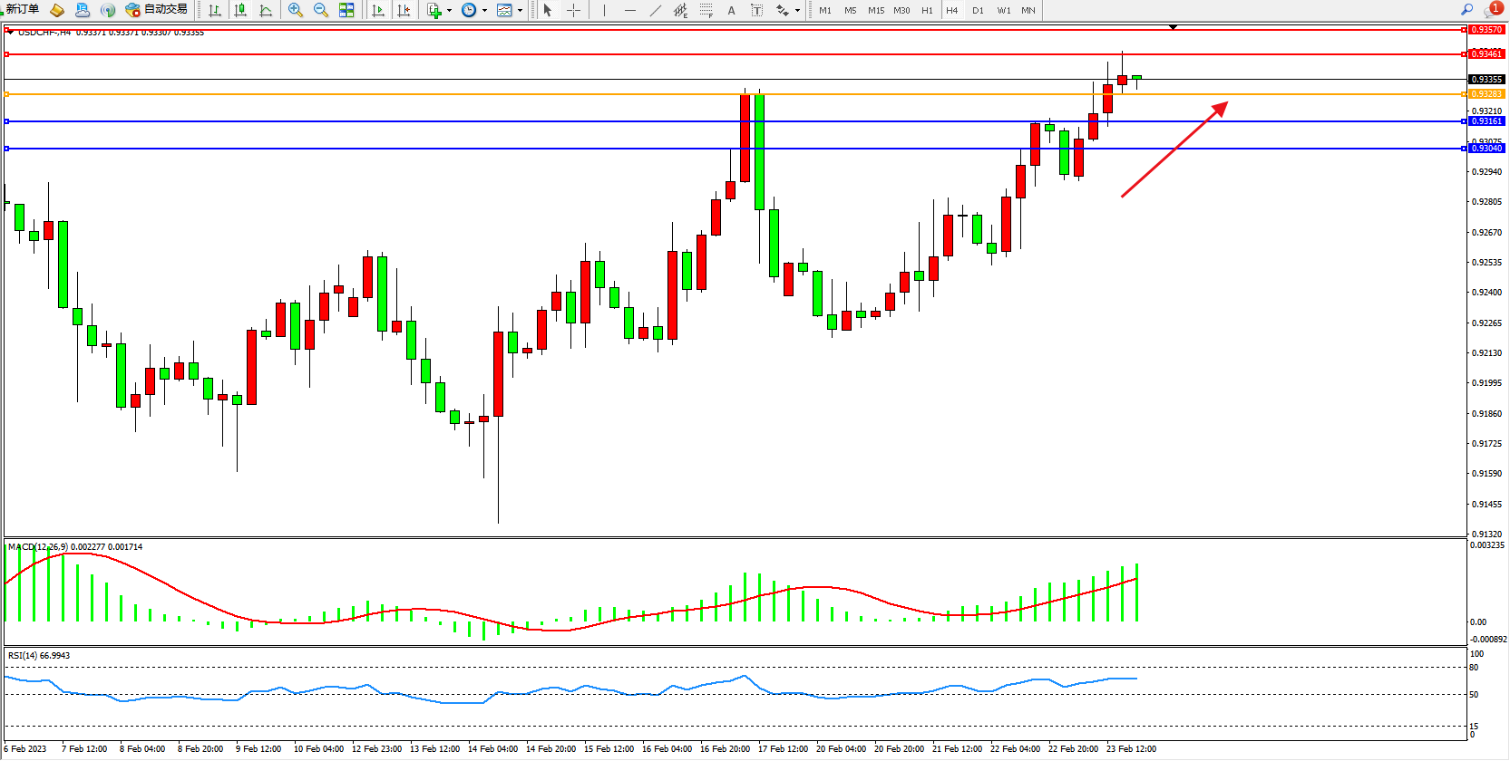 交易策略:0.93283上方看涨,目标0.93461、0.93570