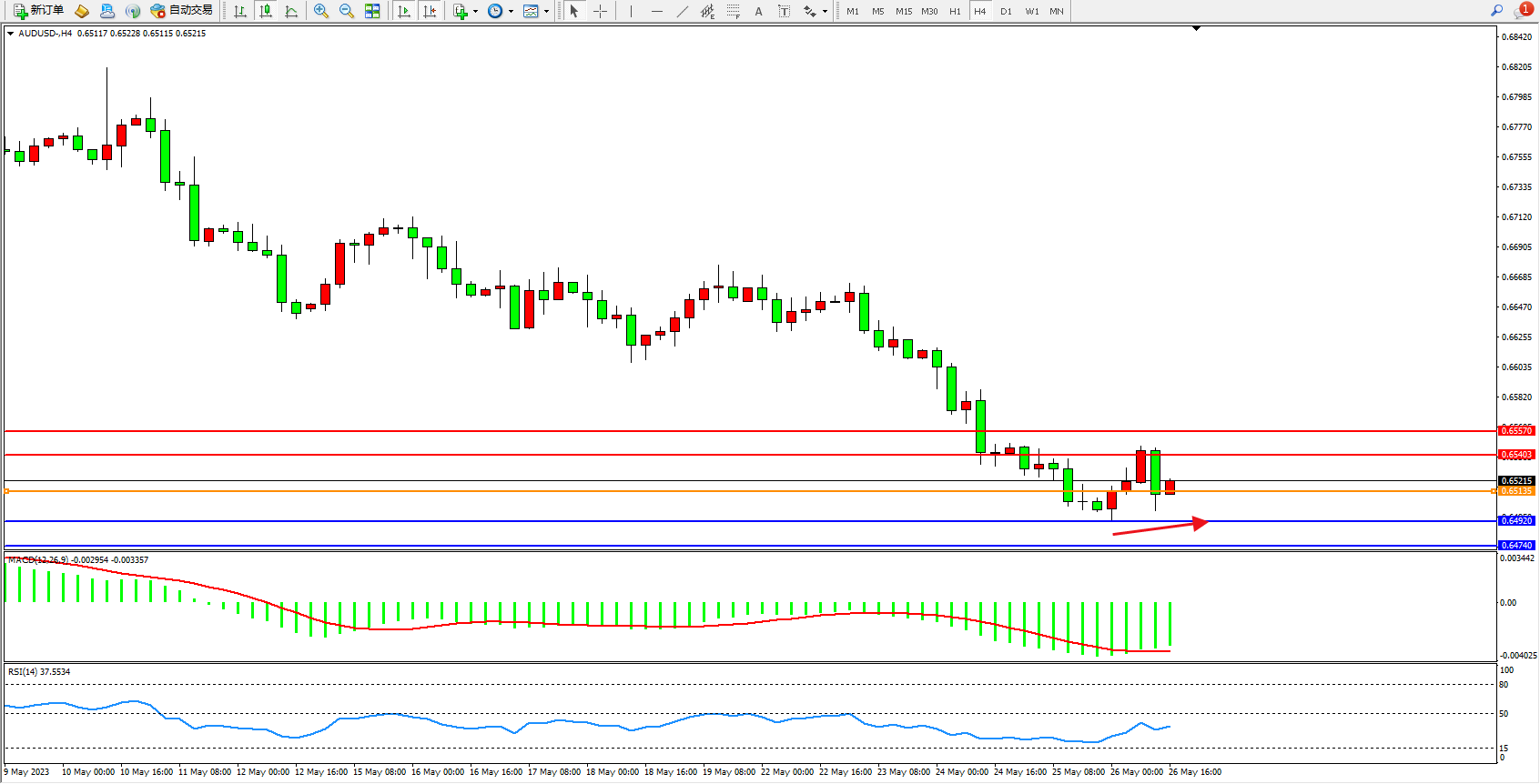 澳元美元AUDUSD——4小时K线图显示: