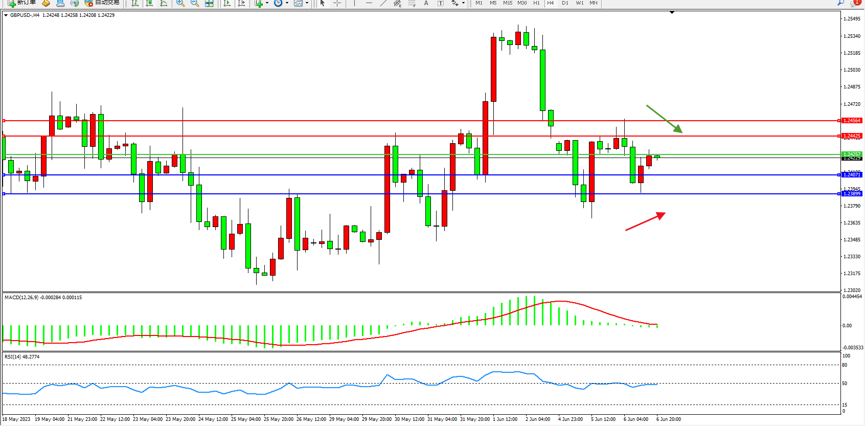 交易策略:1.24257下方看跌,目标1.24071 1.23899