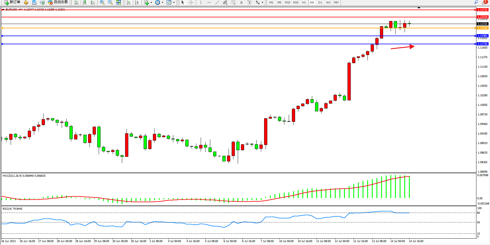 欧元兑美元维持1.12331附近震荡,5月份欧元区贸易赤字大幅收窄,经季调后贸易帐录得9亿欧元。出口环比上升2.9%,进口环比下降0.1%,这对贸易逆差收窄起到推动作用。