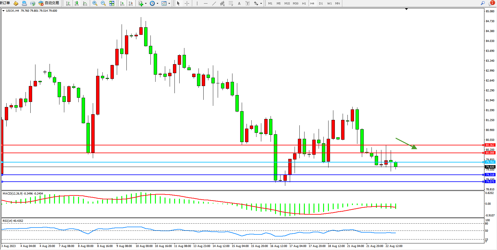 原油维持79.600附近震荡,亚洲大国经济低迷对需求前景构成了压力,市场预计美国原油库存将会下降,仍给油价提供一些支撑。