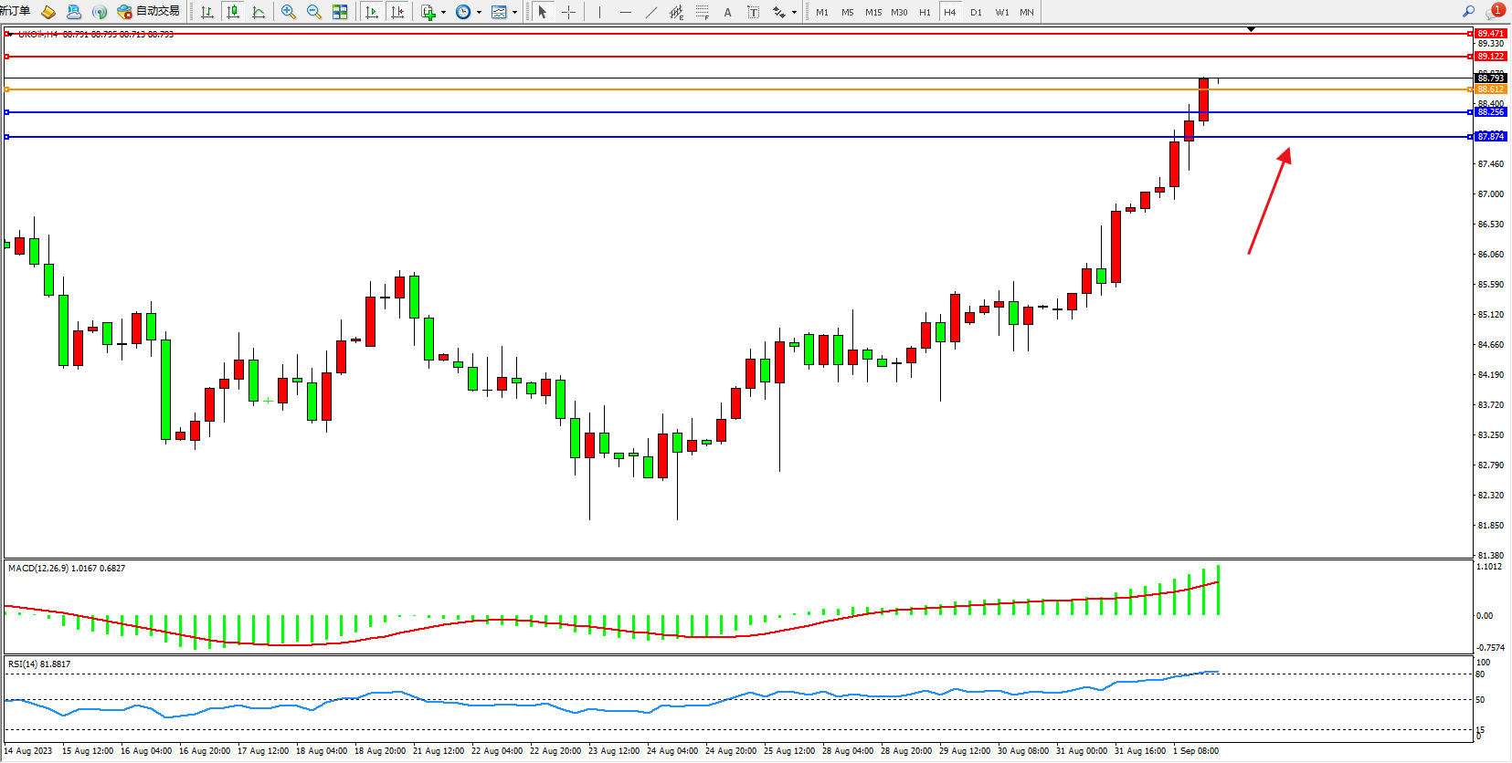 交易策略:88.612上方看涨,目标89.122 89.471