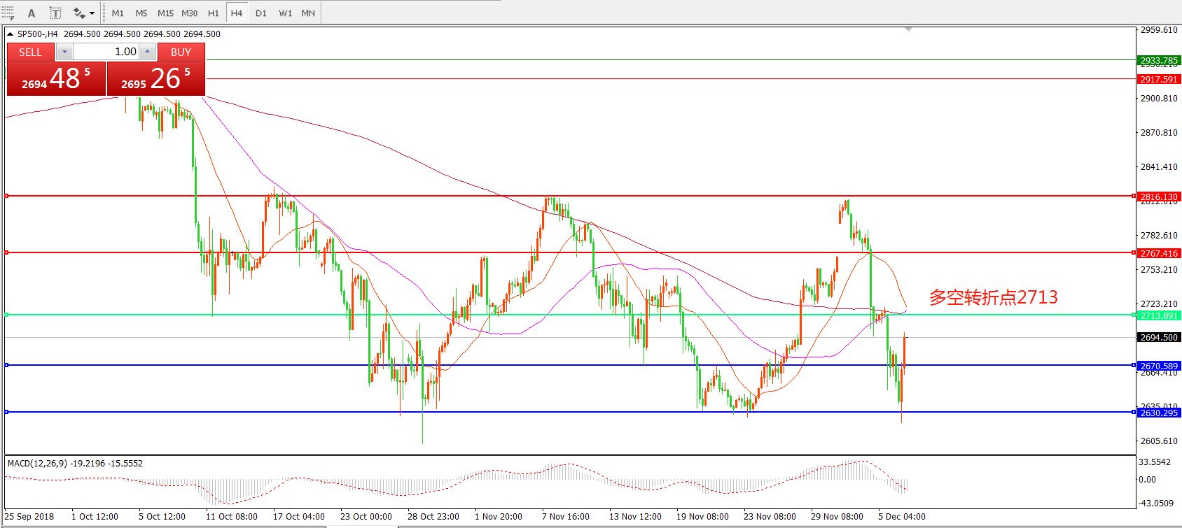 标普500/SP500 4小时图