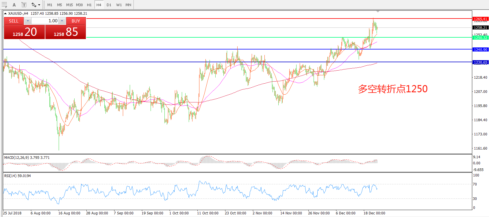 交易策略:在1250.00之上看涨,目标1265.00  1280.00