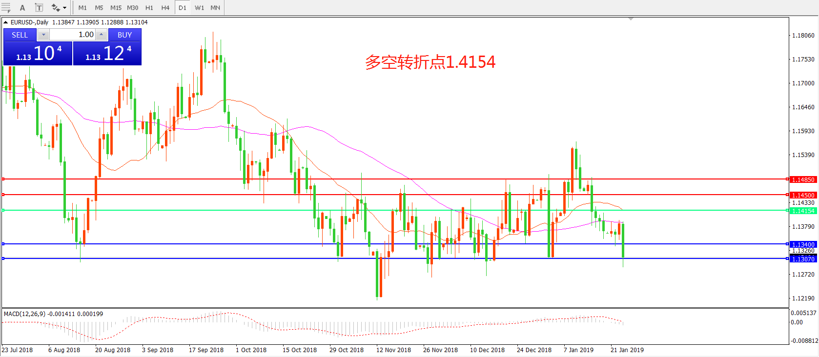 周四,欧洲央行公布1月利率决议,维持三大利率和前瞻性指引不变,重申保持利率不变至少至2019年夏天,重申首次加息后将继续实施QE到期债券再投资。德拉吉表示,近期公布的数据弱于预期,不确定性正在施压情绪。仍需要大规模刺激政策维持通胀。受此影响,欧元大幅下跌,目前险守于1 .1307