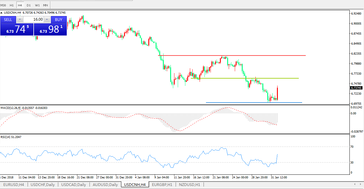 美元兑人民币USDCNH  4小时图: