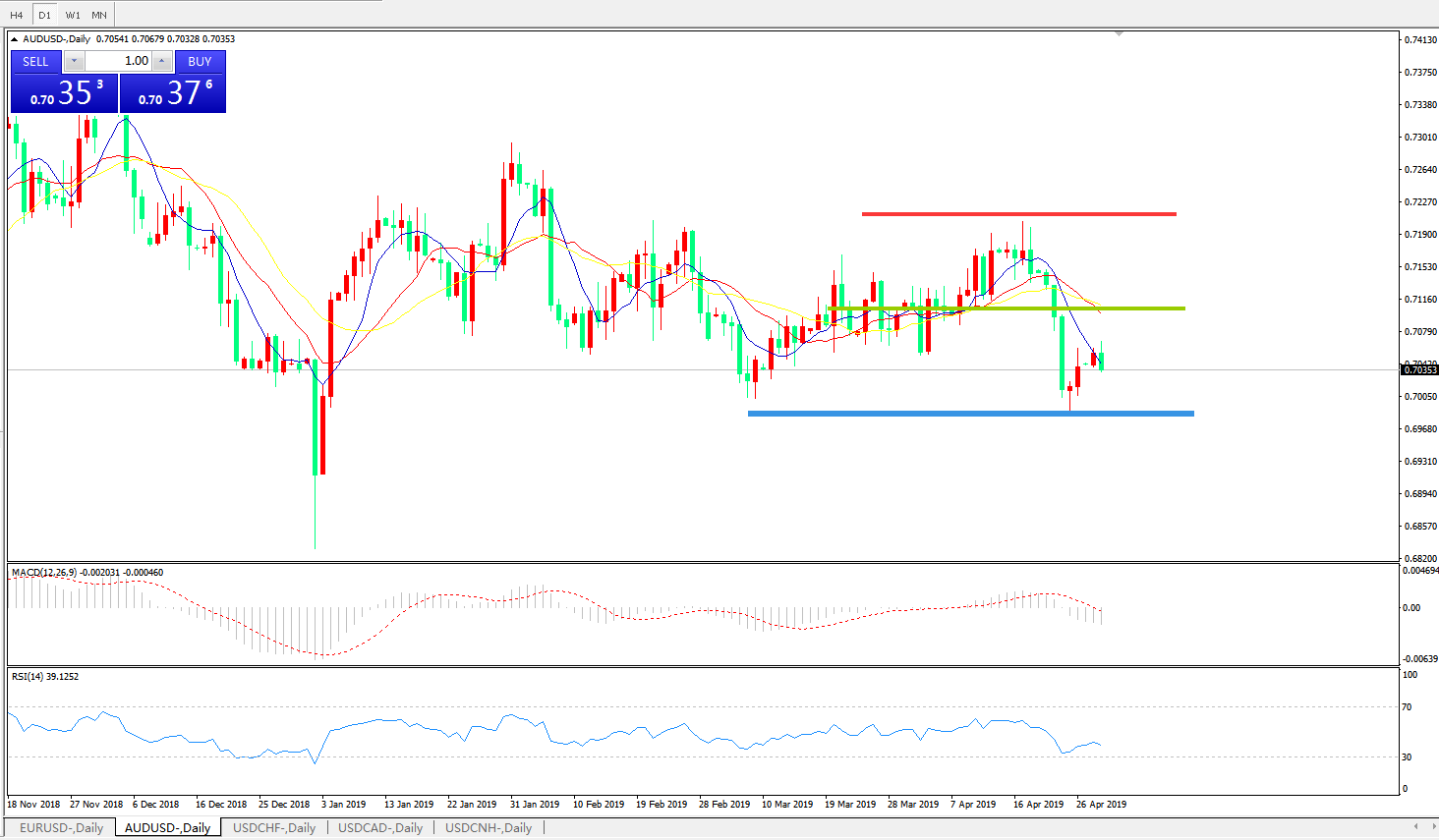 交易策略:在0.7110之下,看跌,目标价位为0.7000,然后为0.6920。