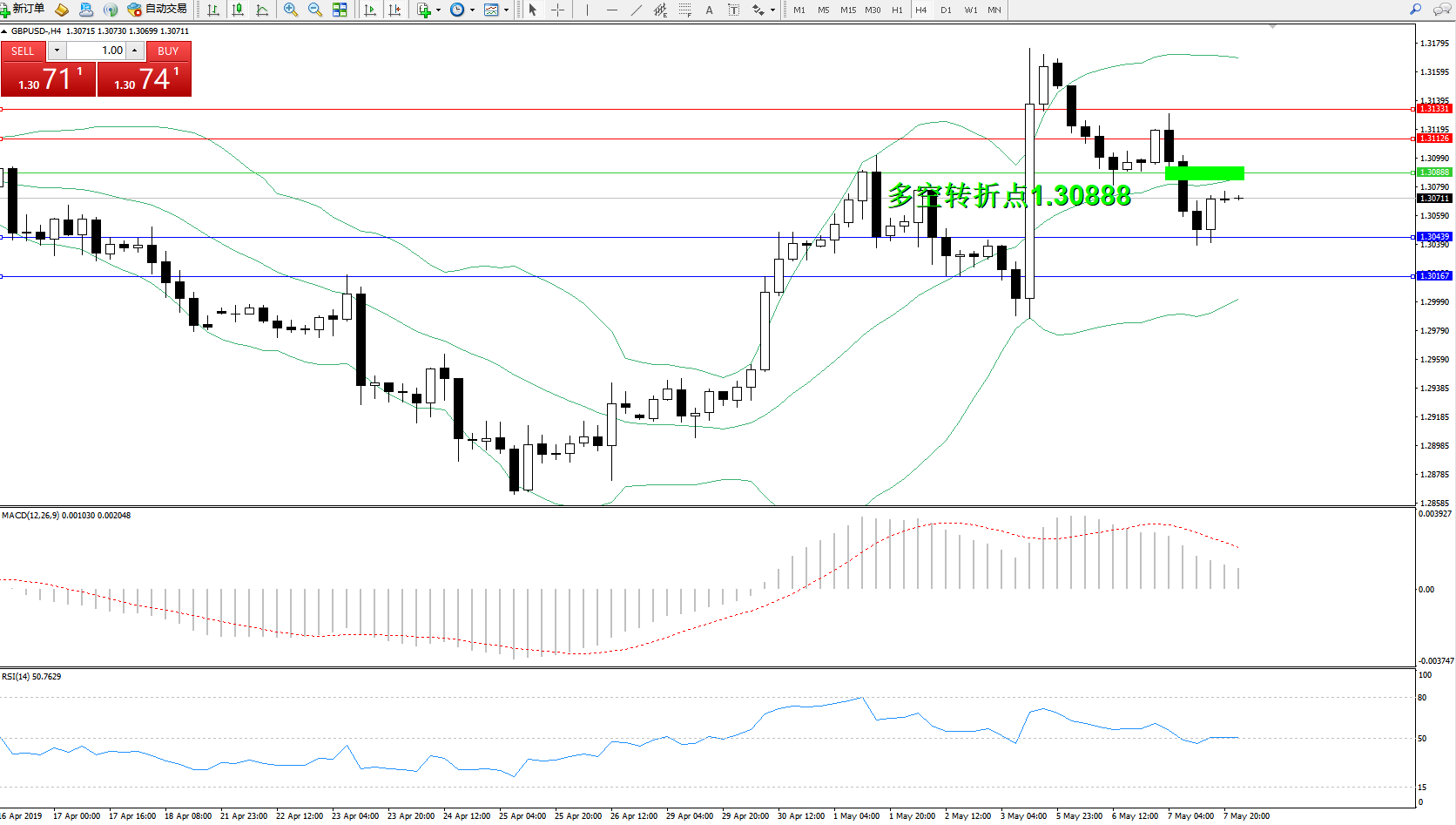 交易策略:1.30888下方看跌,目标1.304391.30167