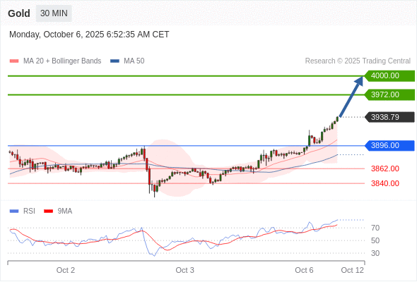 在 3896.00 之上,看涨,目标价位为 3972.00 ,然后为 4000.00 。