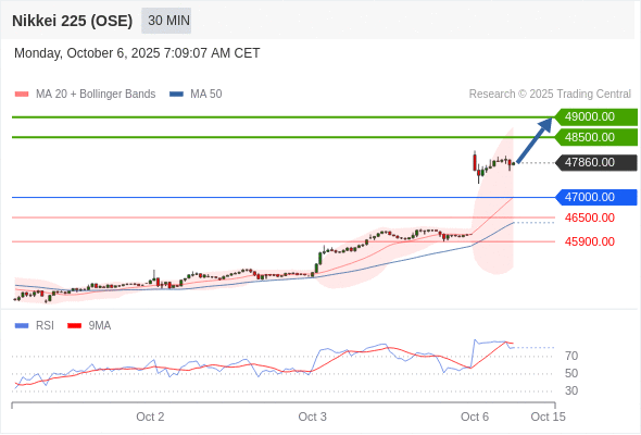 日经225股指期货 (OSE) 当日内: 在47000.00之上,看涨。