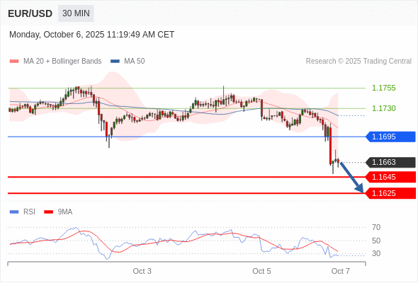 在 1.1695 之下,看跌,目标价位为 1.1645 ,然后为 1.1625 。