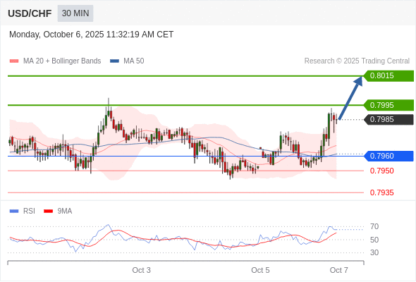 在 0.7960 之上,看涨,目标价位为 0.7995 ,然后为 0.8015 。