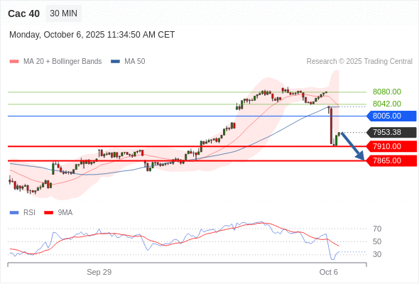 在 8005.00 之下,看跌,目标价位为 7910.00 ,然后为 7865.00 。