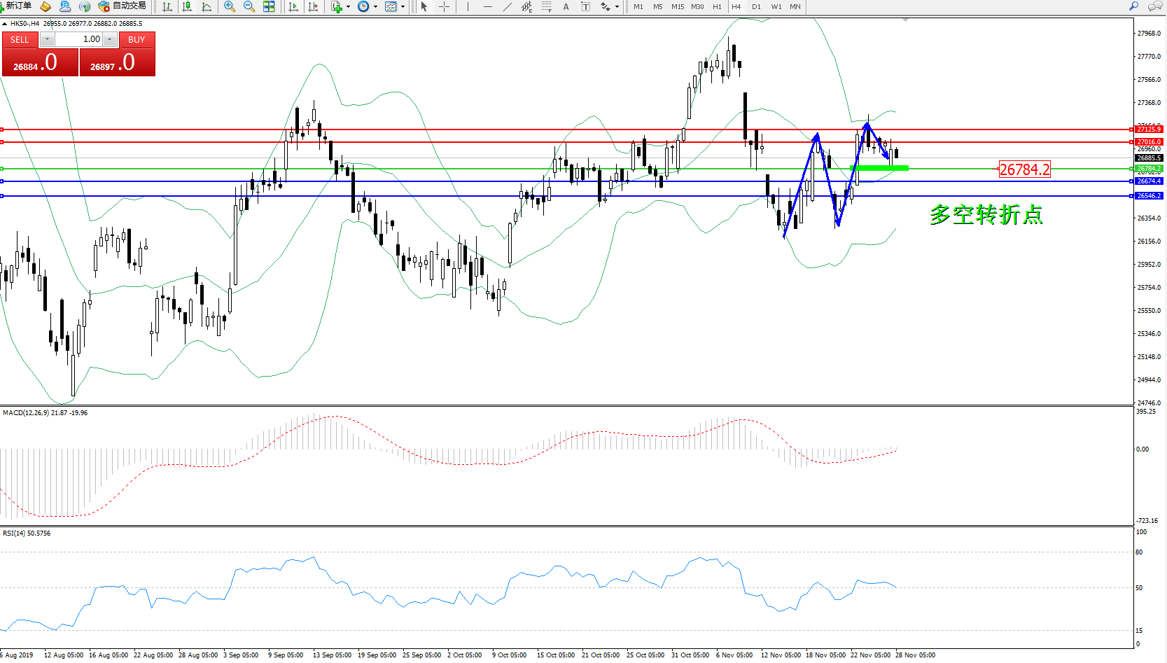 恒指HK50 ——4小时K线图显示:
