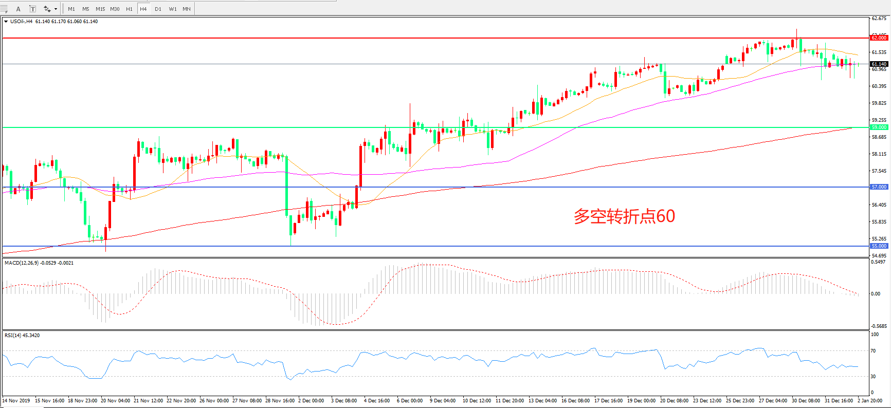 交易策略: 在59.00 之上看涨,目标62.00 65.00