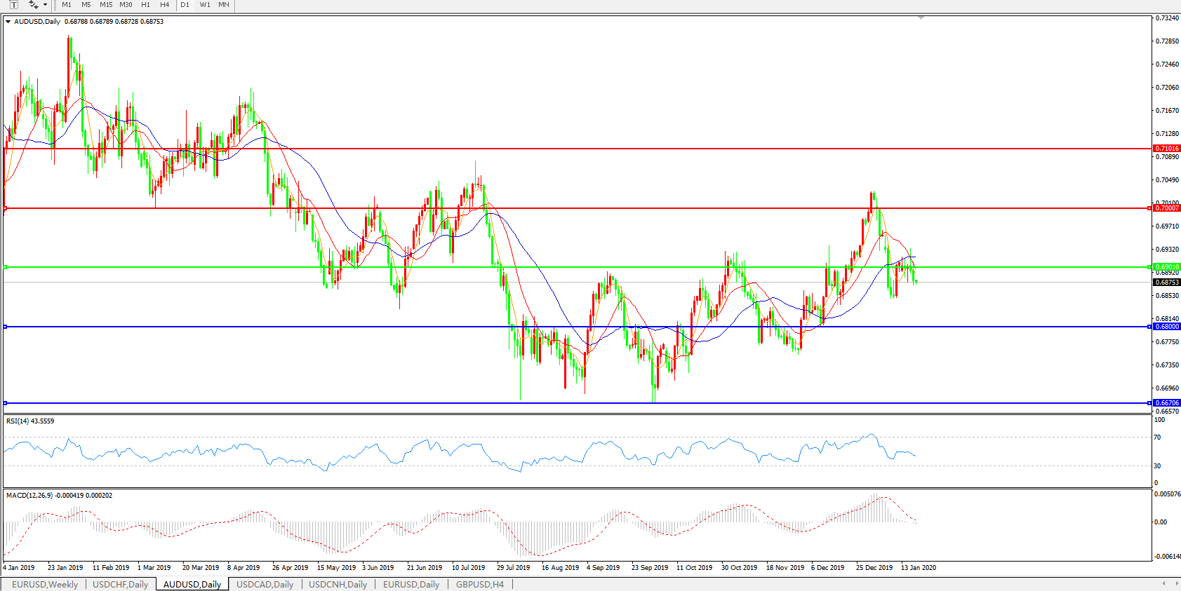 交易策略:0.6900下方看跌,目标0.6800、0.6670