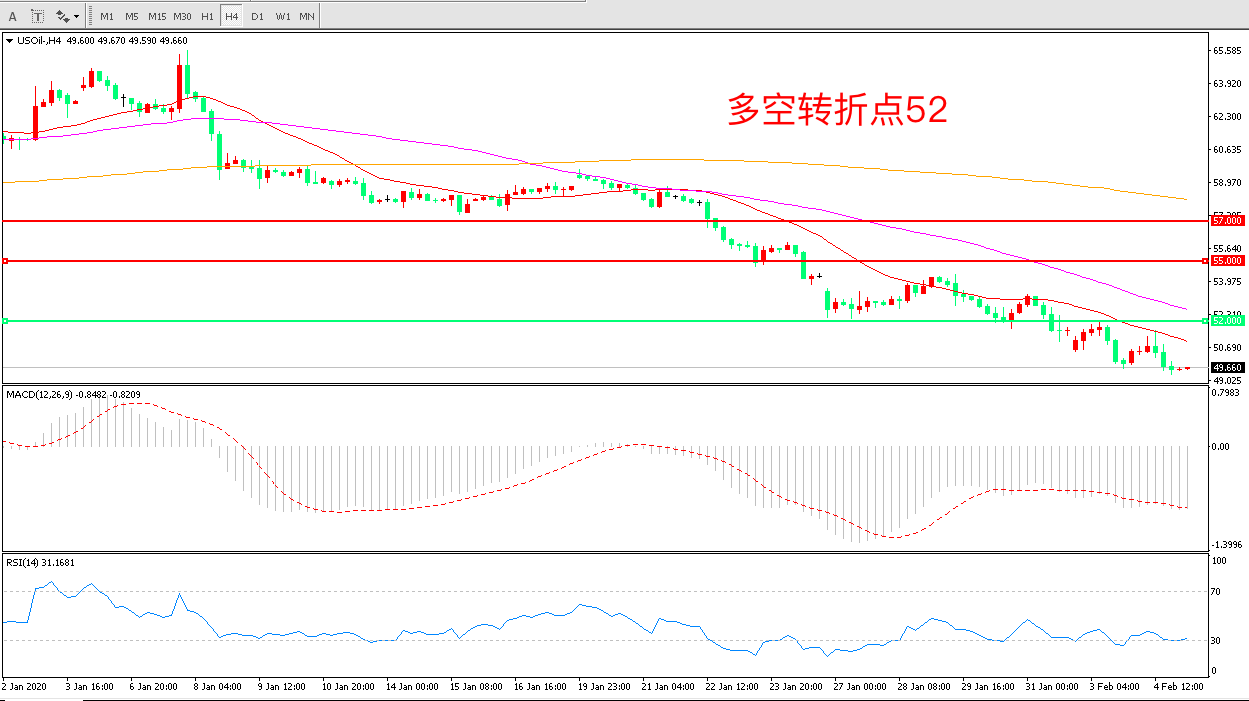 交易策略:在52.00之下看跌,目标49.00         45.00