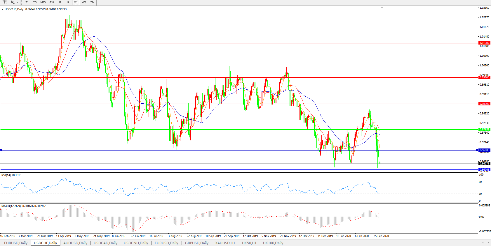 美元兑瑞郎USDCHF 日线图: