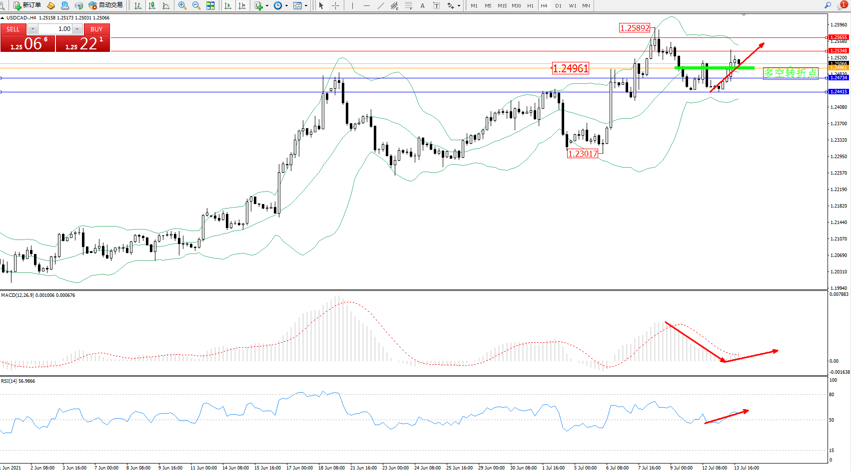 技术点评:多头动力延续布林带指标通道中上轨区间持续震荡上扬,高位抵达1.25892位置后遇阻回撤,短期纠结于中下轨区间整理后多头动力再度入场拉升,纠结于布林带指标通道中上轨区间震荡不断上移,布林带指标呈收口走势持续平移中,MACD指标处于多头区域高位回撤后纠结于0轴线上方弱势徘徊,RSI指标处于50均衡线附近持续整理后开始整理;