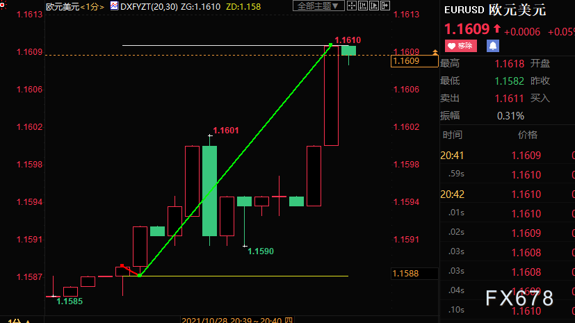 北京时间周四(10月28日)20:30,欧洲央行行长拉加德召开新闻发布会,称经济到年底将超过疫情前的水平,但通胀上升的阶段将比预期持续更长时间。截至发稿,欧元兑美元上浮35点至1.1621。
