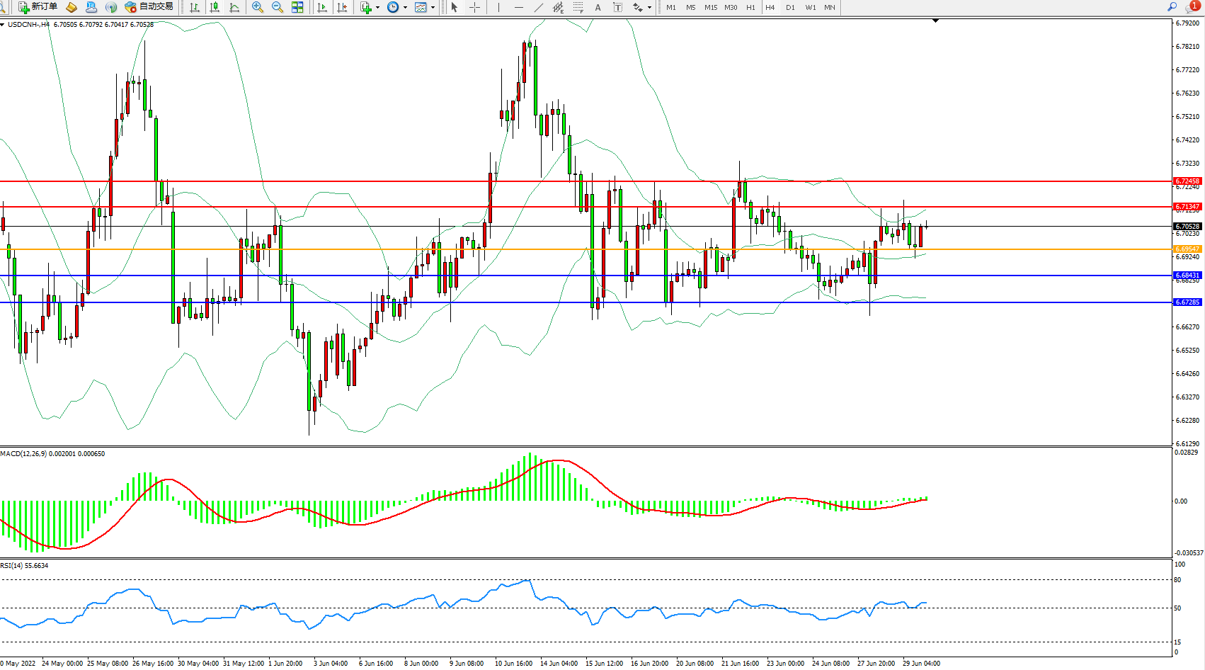 交易策略:6.69547上方看涨,目标6.71347、6.72458