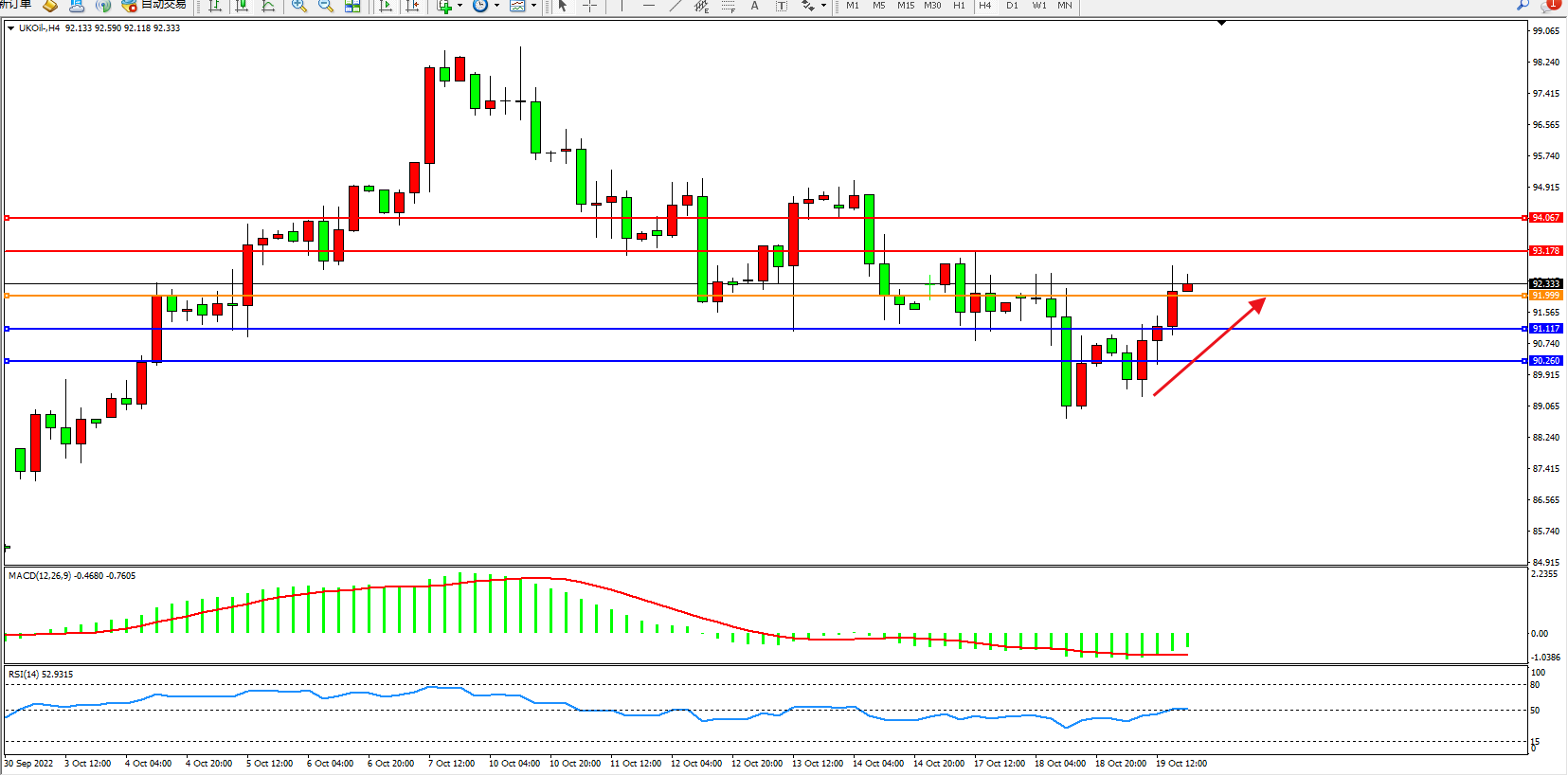 交易策略:91.999上方看涨,目标93.178、94.067