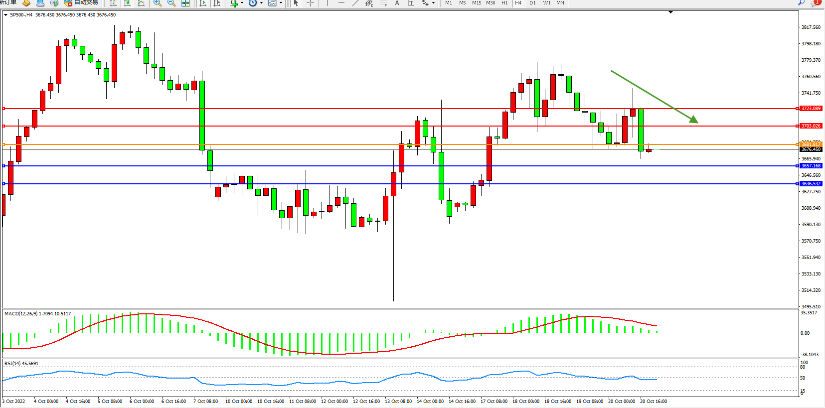 标普500指数10月20日(周四)收盘下跌31.46点,跌幅0.85%,报3663.70点;美国上周初请失业金人数意外下降,表明尽管利率上升导致劳动力需求降温,但就业市场依然紧张。