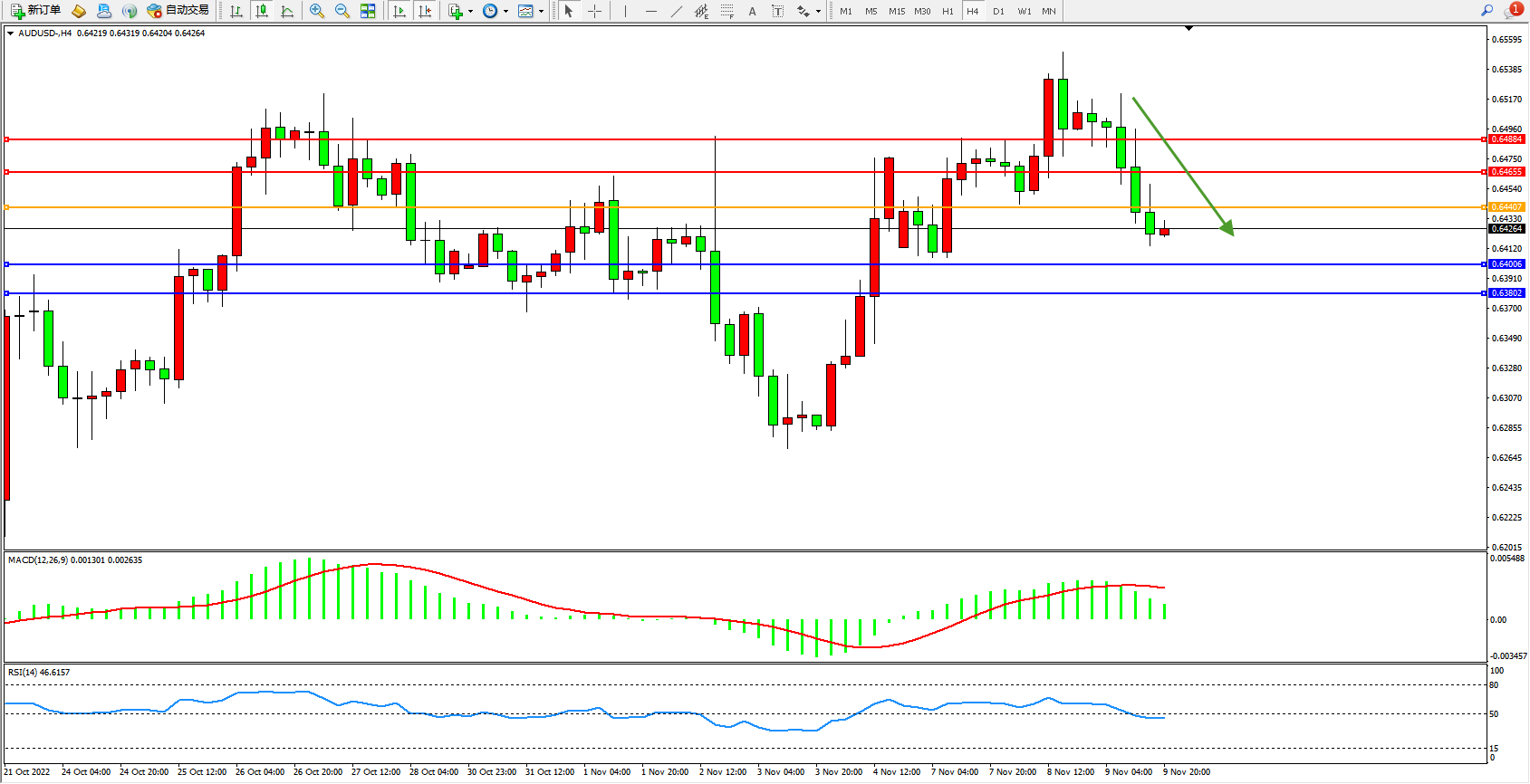 交易策略:0.64407下方看跌,目标0.64006、0.63802
