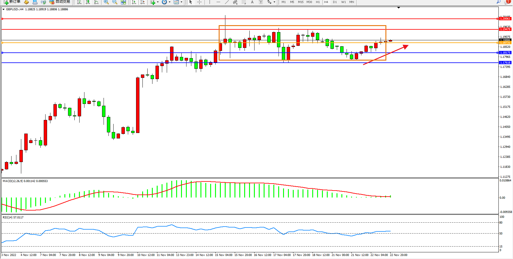 镑美:区间震荡上移