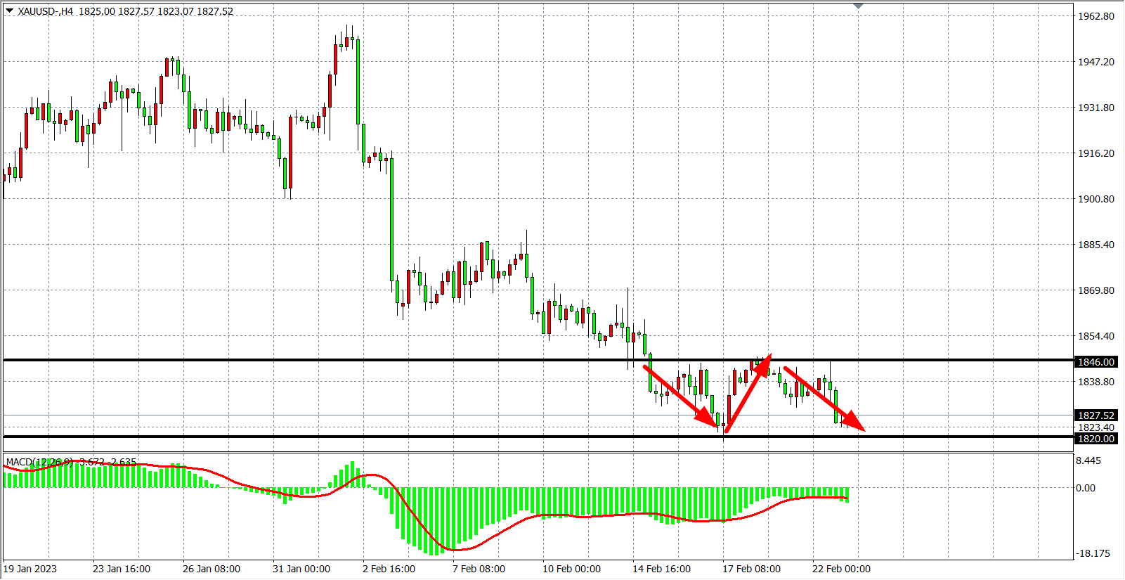 备选策略:在1820.00 之上看跌,目标1800.00 1780.00