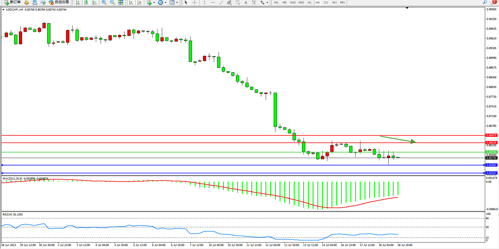 交易策略:0.85930下方看跌,目标0.85507 0.85257