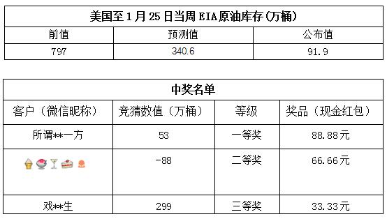 2019年1月第5次“EIA大竞猜”活动的中奖结果已出,获奖信息如下: